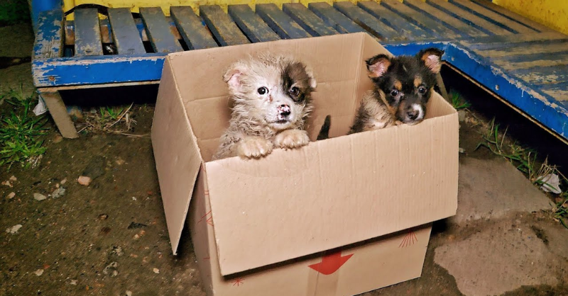 Bus driver stops to rescue puppies found in cardboard box