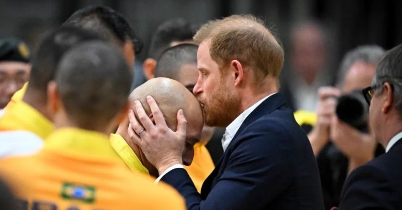 Prince Harry was spotted sharing a warm moment at the Invictus Games finals, planting a kiss on the head of a volleyball player. The Duke of Sussex was...