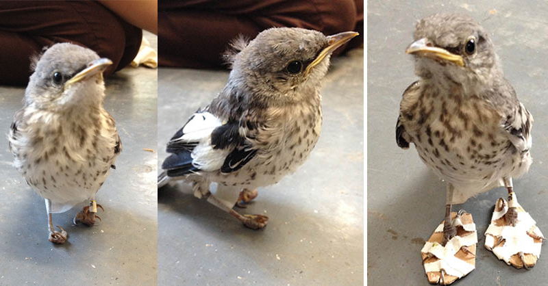 Little Injured Bird Receives Tiny ‘Snowshoes’ And Gets Back On Her Feet