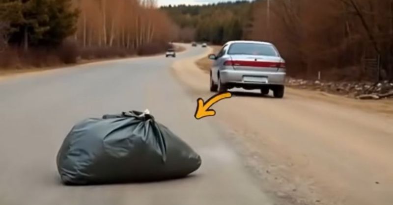 From a car speeding down the road, a strange-looking package was thrown out — and inside, something was struggling restlessly…