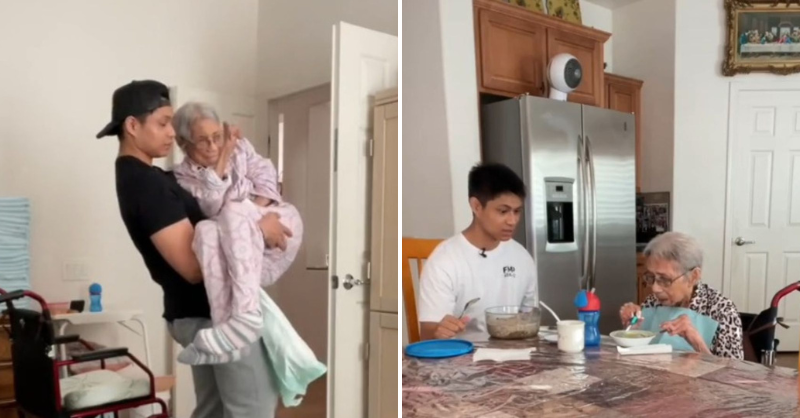 Grandson prevents family from putting grandma in care home by devoting all his time to her