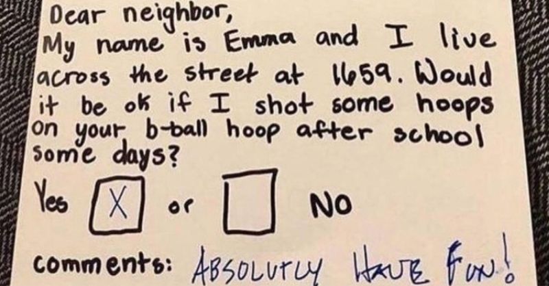 When a little girl noticed her neighbor had a basketball hoop in their driveway, she really wanted to put it to use, so she left a polite note...