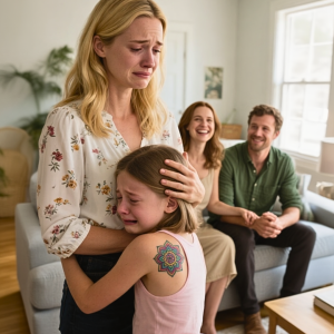 When I visited my ex-husband’s house, I noticed red ink covering my daughter’s back. His girlfriend laughed, “It’s just a few markings.” I smiled and said, “Thank you — you’ve just helped me more than you realize.” When my daughter refused to take off her hoodie, Cassie, my ex’s girlfriend, yanked it up herself. And there it was: three large, intricate symbols down my nine-year-old’s spine, black, green, and red beneath plastic wrap. “She said she wanted to be tough, like in the movies,” Cassie said lightly. But what came next was something I never expected.